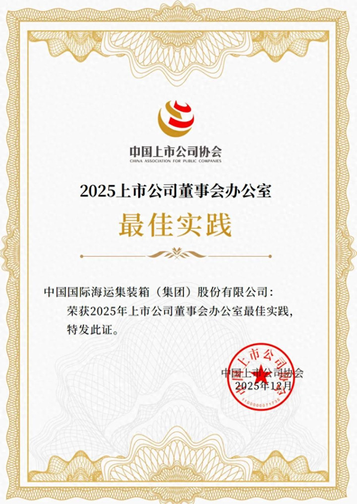 12月3日,中国上市公司协会发布“上市公司董办最佳实践案例征集活动”结果。中集集团再度入选“2025上市公司董办最佳实践案例”,这也是该活动连续开展五年以来,中集集团连续第五年获此殊荣。
